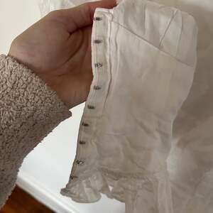 This romantic white crop top features a delicate floral textured pattern throughout. Designed with voluminous short puff sleeves and a deep V-neckline, it offers a feminine and trendy silhouette. The front closure consists of a hidden hook-and-eye row, complemented by a ruffled hem.