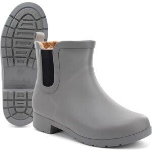 Women’s Gray Waterproof Plush Lined Slip On Rain Ankle Slim Chelsea Boots
