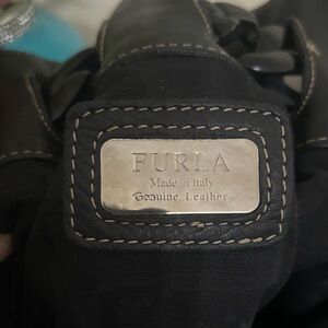 ✨Beautiful Chic black leather shoulder bag by Furla with dust bag. Features a stylish gathered design and sturdy handles, a metal tag, 3 interior compartments, middle zipper compartment and key holder.