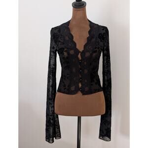 Whimsigoth Black Floral Burnout Velvet Lace Top - Bell Sleeve M Fits like S/XS