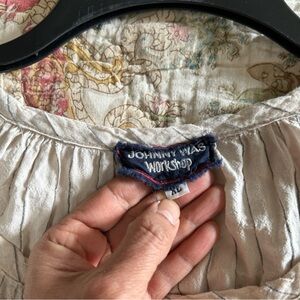 Vintage Johnny Was Workshop Embroidered tan Women's Top Sz xl