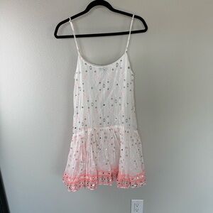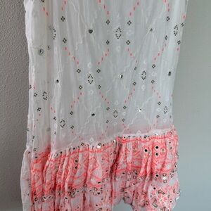 Juliet Dunn Nomad Embroidered Mirrored Cotton Mini Dress White Coral Boho 6/8