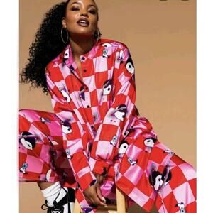The DRESSED IN LALA Satin Playsuit in the Cosmic Cowgirl Set is a stylish and feminine outfit designed for women. This two-piece set includes a long-sleeve dress adorned with a floral pattern in a vibrant pink color. Made from polyester satin fabric, this outfit exudes a casual yet chic vibe, perfect for a spring occasion. The set also features button accents and is part of the Air Force theme, making it a unique addition to any fashion-forward wardrobe.