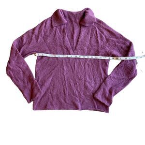 Brushed V-Neck Polo Alpaca & Wool-Blend Sweater Size L NWOT