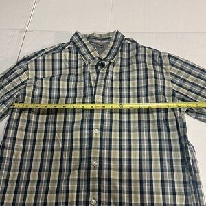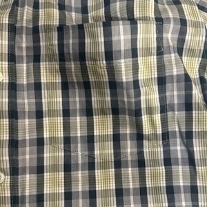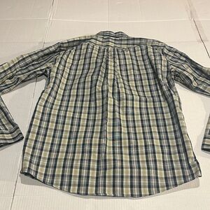 EUC Stylish men's plaid shirt featuring a classic button-up design. Perfect for casual or semi-formal occasions.blue green and white