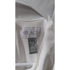 This is a new white blouse for girls in size 5/6 from The Children's Place. It features short sleeves and is designed for casual occasions. The blouse is made of polyester and is machine washable for easy care.