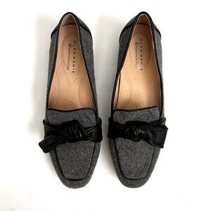 ALEX MARIE Aldelyn Flats Loafers Black Leather Gray Felt Bow Detail 9.5