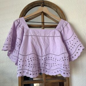 Rails, eyelet top, embroidered blouse, lavender top, purple blouse, spring top, summer blouse, cottagecore, romantic style, feminine top, boho chic, cropped blouse, square neckline