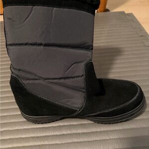 Gently used. These are waterproof! I loved the waterproof aspect. Warm enough (not artic warm…if you want something for deep snow and sub zero, get a different brand). These are good enough for running errands on a cold day.