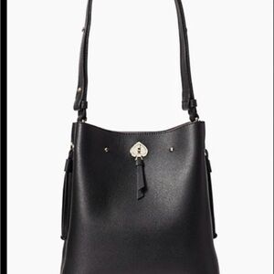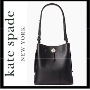 Sophisticated Marti Kate Spade Bag, Bucket Bag design that is 5” wide at base to fit everything you may need but small enough to be sleek at 9” high and 8” wide. This design is functional and sleek. Ideal for any occasion. Features a unique closure. Rare find: brand new never used and comes with original microfiber bag for storage.