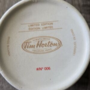 This piece beautifully captures the retro coffee shop vibe and serves as a timeless tribute to Canada’s favorite cafe. Whether you're a dedicated Timmy's fan or looking for the perfect heritage gift, this mug is a standout. Numbered #006 on the base.