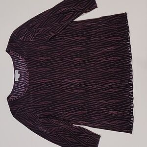Sag Harbor Woman Pullover Crinkled Graphic Top Purplr Black 1X