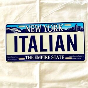 License plate Italian New York ! BRAND NEW. Great for garage wall or for a fun room or on your car!