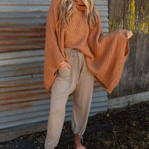 Super cute and cozy Three Bird Nest sweater poncho! Super soft and warm! It's tagged a large but fits like a one size fits most, in my opinion. I'm a size medium, and it fits me like a baggy boho look. It's a camel color. Never worn!