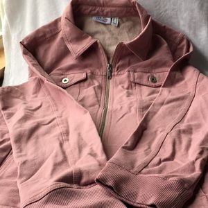Denim & Company woman’s pink zip up jacket size Medium. Has two button top pockets and two lined side pockets. Nice gently used condition.