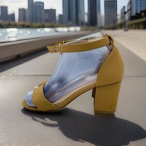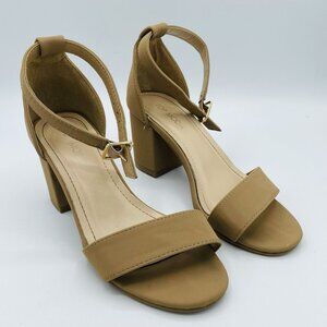 Top Moda Womens Shoes Size 6.5 Taupe Block Heels Ankle Strap Sandals Open Toe