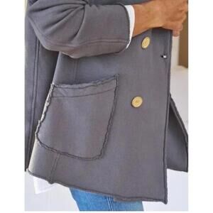 Excellent like new condition Frank & Eileen Mini Belfast Crop Knit Peacoat In Elephant Women’s size Medium
