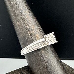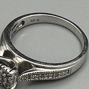 This elegant sterling silver ring features a stunning diamond centerpiece, perfect for adding a touch of sophistication to any outfit. Size 6.5