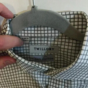 Twillory Safe Cotton Non Iron White Gray Windowpane Button Down 16 34/35