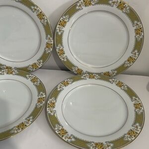 Great previously owned condition. Minor wear. Has some light utensil marks/scratches. Minor wear to gold rims and yellow floral design. Plates measure about 10 1/4” in diameter. Please view photos.