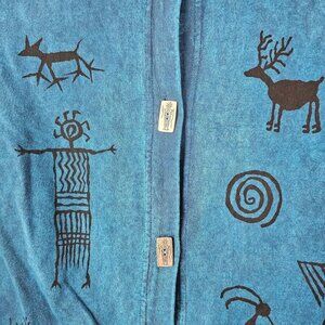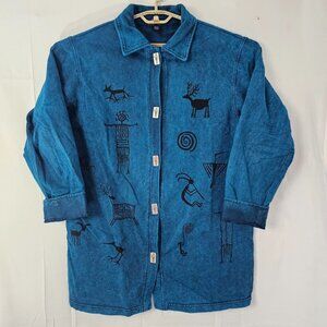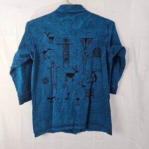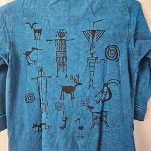Bfofo Shacket Womens Large Sweatshirt Jacket Acid Wash Cave Art Tribal Southwest