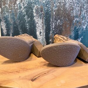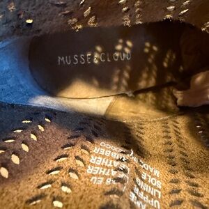 Add a touch of Western flair to your wardrobe with these stylish Musse & Cloud Avaly booties. Crafted from genuine leather in a versatile tan shade, they feature a unique laser-cut leaf pattern on the shaft and a sturdy stacked block heel. These pull-on ankle boots are perfect for festival season, casual outings, or adding a chic touch to any outfit. The distinctive "M&C" emblem is embossed on the heel. Original box not included.