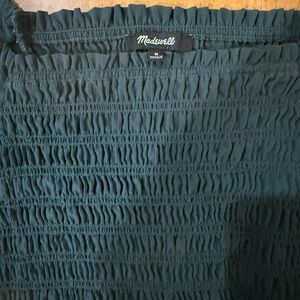 Elevate your wardrobe with this romantic off-the-shoulder blouse from Madewell. Crafted in a rich forest green hue, this top features a fully smocked bodice for a flattering, stretchy fit and soft ruffled edges at the neckline and hem. Billowy long sleeves with elastic cuffs add a touch of boho charm, making it perfect for everything from weekend brunch to date night. Lightweight and lined for comfort, this piece pairs beautifully with high-rise denim or a flowy skirt.