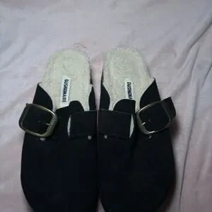 Step into comfort with Cushionaire black mules. Featuring a stylish buckle, these shoes offer both elegance and ease for any occasion.