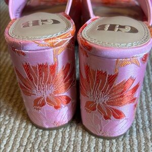 New Gianni Bini Platform Pink Floral Mules with Embellished Buckle size 7/7.5
