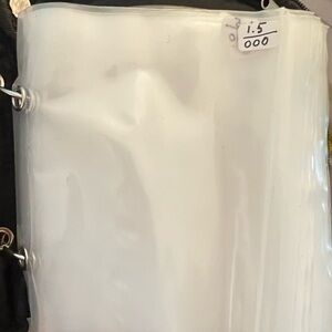 20 thick plastic storage bags and 2 zipper pockets, 1 on the front flap and 1 on the back. You can keep all of your knitting needles inside, plus notions and whatever else, in the zipper pockets