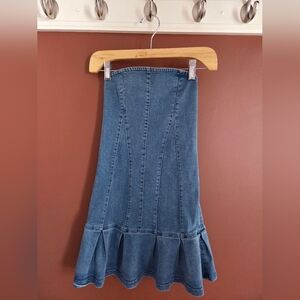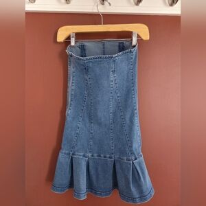 Strapless denim mini dress