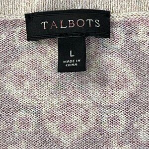 Talbots Womens Cardigan Sweater Burgundy Wine Paisley Print Metallic Gold L NWOT