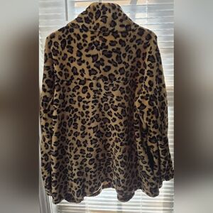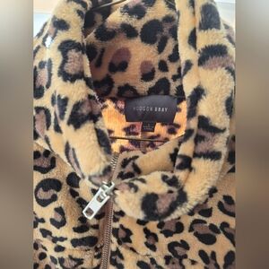 Hudson Gray Brand Women's Leopard Print Fleece Pullover 1/2 Zip Large