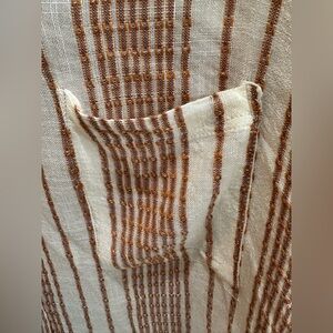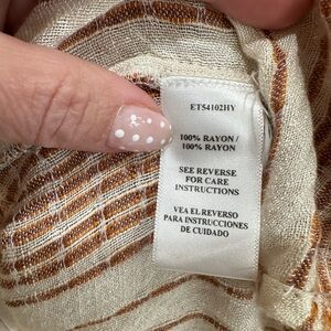 Stylish button-down with cream and brown/orange stripes. Soft fabric and relaxed fit. Perfect for a day date or a casual outing. Size small.