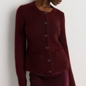 NWT! | QUINCE Mongolian Cashmere Structured Cardigan Sweater | Rich Burgundy | S