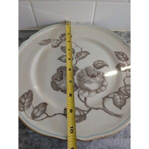 CASTLETON Vintage Gloria Dinner Plate Pearl Edge Taupe Roses With Turquoise Line