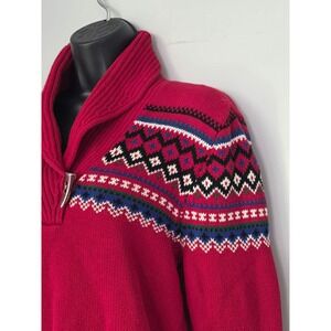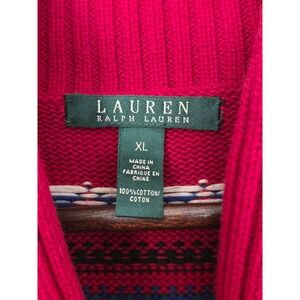 Lauren Ralph Lauren Women's Sweater Size XL Red Shawl Collar Fair Isle Toggle