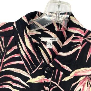Amuse Society Black Hawaiian Floral Print Front Tie Button Up Shirt Size Large. In excellent condition, no flaws. Laying flat measurements: 25” long, 25” across armpit to armpit.