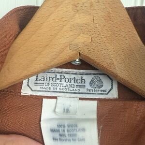 Laird-Portch of Scotland wool shirt size 12. Button down wool shirt does have one imperfect of an area with loose threads as shown in the photograph. Otherwise in good used condition.
