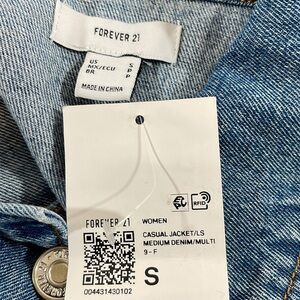 FOREVER 21 Denim Plaid Casual Jean Jacket Button Front & Chest Pockets Sz. S NEW