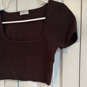 Aritzia Babaton Sculpt Knit Square NeckShort Sleeve Crop Top Size Medium