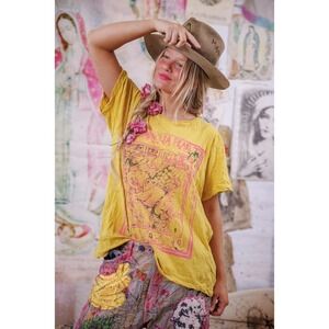 Magnolia Pearl Short Sleeve Yellow T-Shirt Indian Postmark Elephant NWT