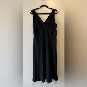 The J. Crew Silk Chiffon Sophia A-line Black Sleeveless Dress is a stunning and elegant option for various occasions such as weddings, parties, and formal events. Made from luxurious silk fabric, this dress features a V-neckline, side zip closure , and a knee-length and fully lined. The dress is beautifully accented with a woven design and is designed for a size 16 women. With its classic style and timeless appeal, this J. Crew dress is a perfect choice for those looking for a sophisticated and stylish outfit for special occasions.