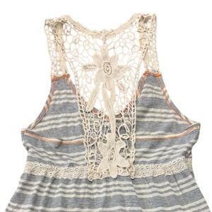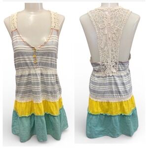Daytrip L Large Tiered Boho Crochet Lace Trim Striped Tank Mini Dress Women's