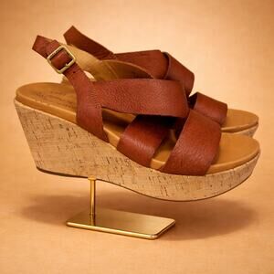 Kork-Ease Ashcroft Brown Leather Wedge Cork Platform Sandals 8