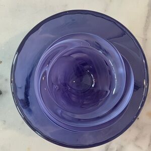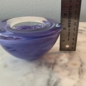 Stunning glass bowl with a mesmerizing lavender swirl. Ideal for decor or as a centerpiece.