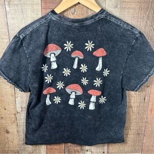 Fifth Sun Mushroom Graphic Tee Medium Acid Wash Hippie Earthy Boho Crop Top