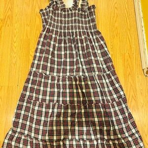 Charming plaid sleeveless dress perfect for any occasion. Features a comfortable fit and stylish design. Only worn a couple times dress is from Hill House sz XL