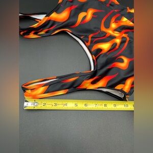 Flame Print One Piece Bodysuit Swimsuit Sleeveless High Cut Bikini Swimwear SM