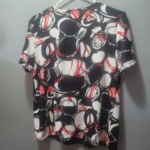 Lindor Black, White and Red Circle Patterned Short Sleeve Top M